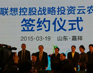 2015年3月19日,联想控股股份有限公司(以下简称“联想控股”)战略投资云农场签约仪式在山东济宁嘉祥县举行。联想控股高级副总裁陈绍鹏、云农场董事长王书平分别代表双方进行签约。这是联想控股打造“全新农业产业生态圈”的重要布局,也是其“互联网重塑传统行业”这一重要战略的落地实践。此次战略投资将对云农场以网上农资商城为平台,整合上下游资源,成为业界最大的互联网农资与科技服务平台提供强劲助力。