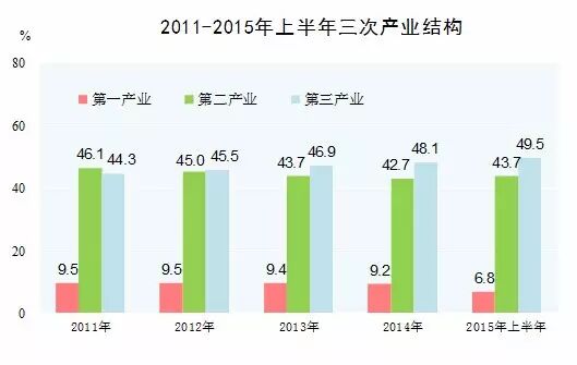 从产业结构来看。第三产业异军突起,上半年增加值已占据GDP“半壁江山”。前三季度,第三产业增加值占国内生产总值的比重进一步提高为51.4%,高于第二产业10.8个百分点。国家发改委宏观经济研究院经济所副研究员刘雪燕介绍,第三产业每单位增加值耗电量仅约为工业的15%,运输需求也大大低于第二产业。
