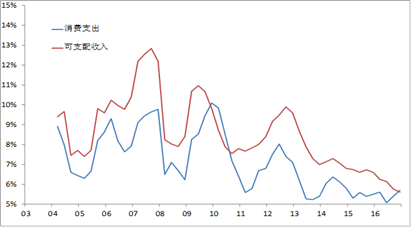 居民可支配收入与消费增速的下降