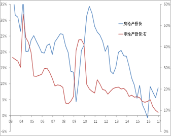 投资实际增速:地产、非地产